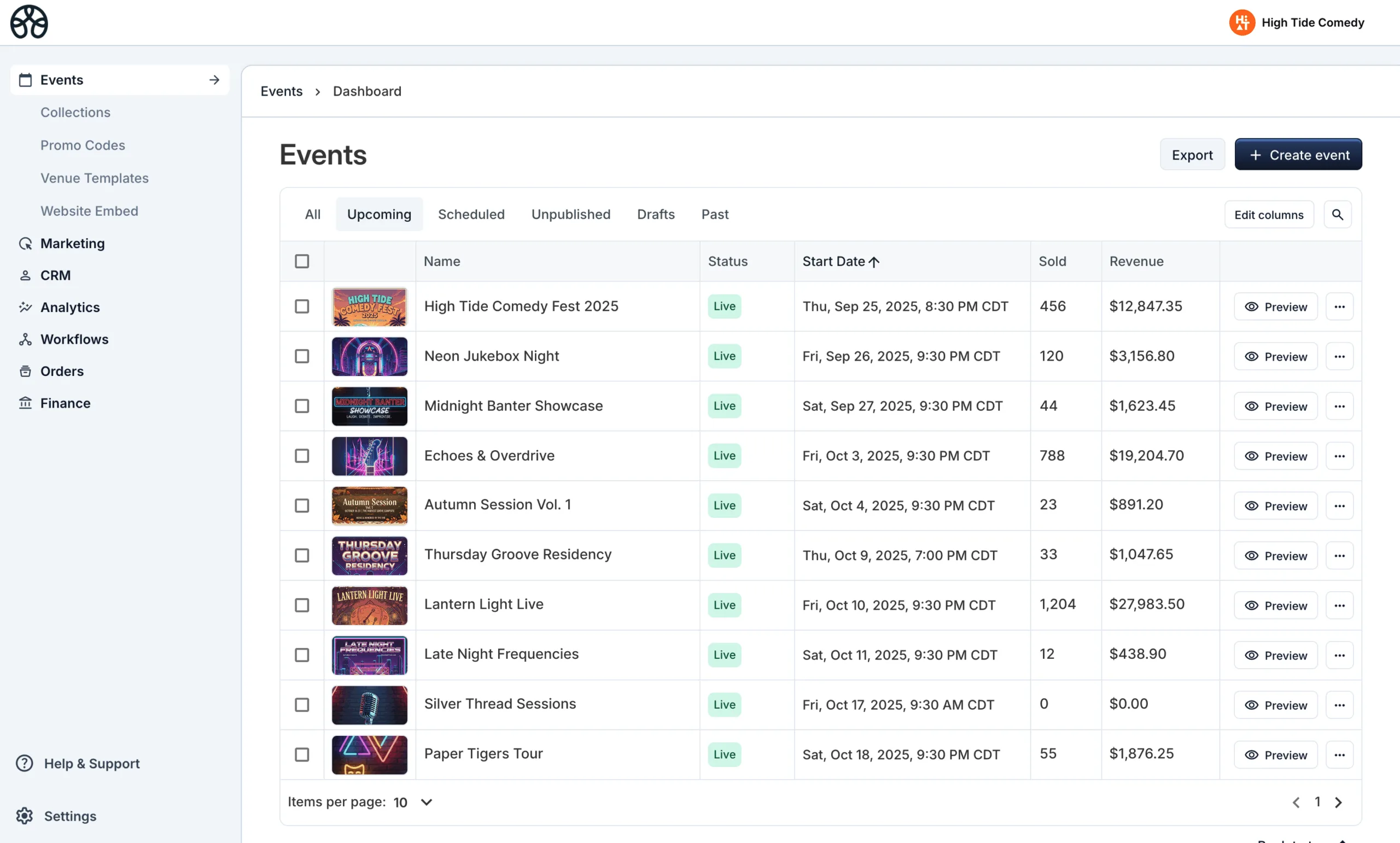 Sell tickets, bundles, and products. Replace disconnected databases, marketing tools, and extra subscriptions with one unified engine for event-driven businesses.