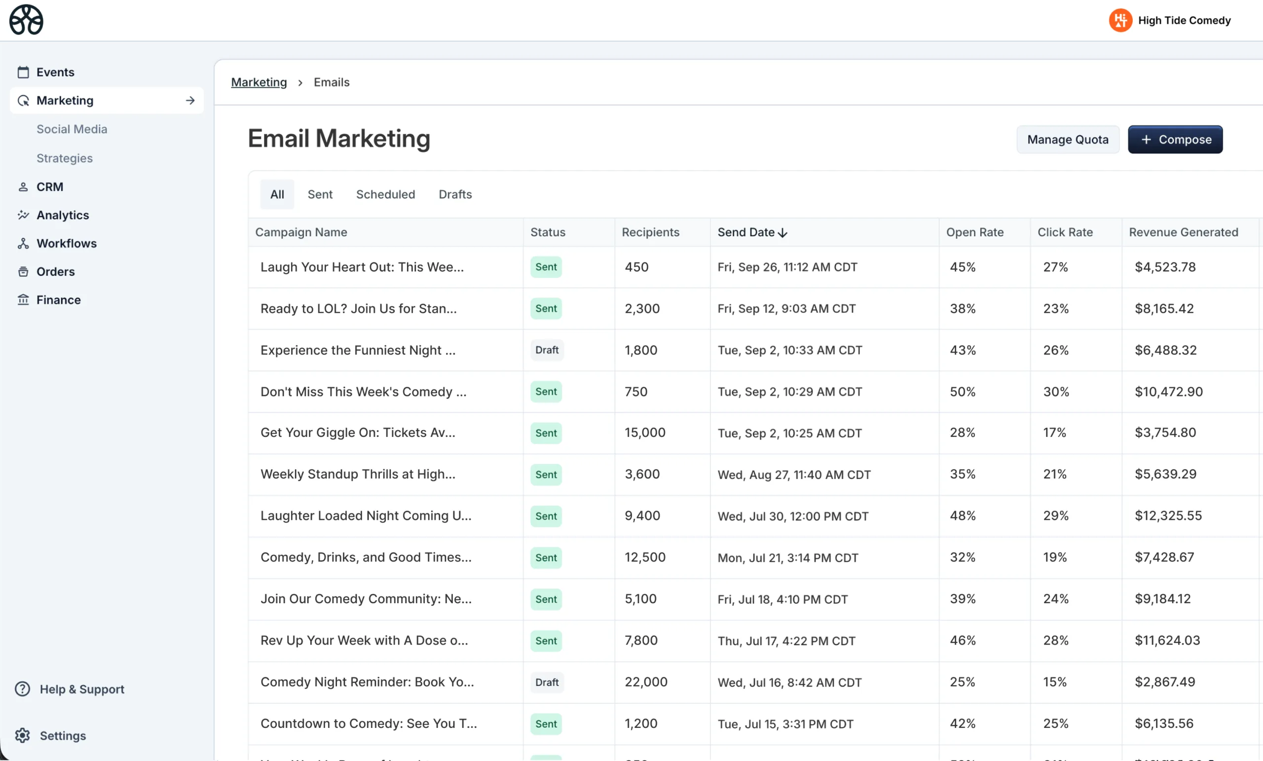 Grow your audience and tie every marketing dollar to a ticket sold. All in one place.